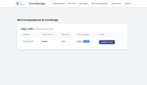 Cliquez sur “Voir les correspondances”, afin de visualiser les autres utilisateurs qui ont les mêmes dates et/ou horaires sur votre lieu de stage.